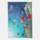 Cette scène colorée d'espèce marine comporte une grande variété de créatures d'eau de mer comme des poissons de Garibaldi, la pastenague, le scalaire, le commandant de sergent, des coraux, et des méduses.