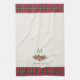 tartan rouge élégant, monogramme de noël rustique, serviette de cuisine customisée personnalisée, motif de chèque de nom personnel, écossais vérifié à damiers décolleté, ajoutez votre propre texte royal, nom de famille joyeux xmas, plat sophistiqué paraphé initial, classique oiseau européen traditionnel, christmassy xmasy british robin
