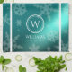 Ajoutez une touche festive aux fêtes de fin d'année et de Noël avec cette élégante serviette à main, qui présente des flocons de neige tombant sur un faux papier bleu clair métallique / ombre / arrière - plan mémoire. Ajoutez le texte initial/monogramme (ou logo), le nom, l'année ou le texte personnalisé selon vos besoins. Design © W.H. Sim. Voir plus sur zazzle.com/expressionsoccasions