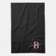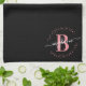 Fille, tendance, élégant, moderne, rose et noir blanc monogramme nom initial script personnalisé monogrammed serviette de cuisine monogrammée personnalisée. Doté d'une initiale monogramme et d'un script de nom de girly dans une police de caractères de calligraphie lettrée et d'un cadre de cercle pointillé autour de votre monogramme. Un cadeau féminin parfait pour soeur, mère, petite amie, anniversaire, mariage, douche nuptiale, fête de 16 ans sucrée, ou toute personne qui aime le style moderne jolie petite fille.