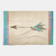 Une flèche rustique avec floral et turquoise-plume fletching sur un fond beige texturisé, avec l'équilibre tribal au néon coloré de motif.
