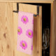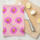 Motif sans couture de la fleur de Zinnia imprimé sur la serviette de cuisine. Les couleurs de la fleur de Zinnia sont des fleurs à rayons roses et à disques jaunes. Serviette de cuisine design fleurie pour les amateurs de fleurs ou de nature.