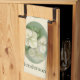 Cette serviette de thé est agrémentée d'oeuvres d'art aux couleurs pastel douces picturant trois fleurs crémeuses d'hydrangée en feuilles de chêne blanc avec des bourgeons accentués en vert et mis contre un arrière - plan couleur crème avec le texte modèle qui peut être customisé.