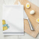 Cette amusante serviette de cuisine à chaudière à fromage présente la pièce sur une bannière enroulée autour d'un coin de fromage suisse, avec les mots "fromage le jour".