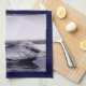 Profil d'un pélican - le pélican brun dans la photographie originale sur cette serviette 100% de cuisine de sergé de coton glisse le long de l'eau d'un canal sur la Côte du Golfe de la Floride. Le côté d'un bateau à l'arrière-plan montre les réflexions miroitantes de l'eau bleue. La photo est aux nuances des bleus, gris doux et bruns, avec un contact de jaune sur la tête du pélican. L'arrière - plan derrière les photos est bleu-foncé, mais peut être changé si vous préférez.