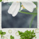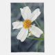 L'image de cette serviette de cuisine est une photo originale de MaeFlowers d'un fleur sauvage. C'est une minuscule fleur blanche avec cinq pétales et un pompon orange jaune au centre. La photo est un closeup, avec la fleur elle-même au centre pointu, la tige verte et les feuilles de la fleur au centre doux, et le reste de l'arrière - plan dans des tons doux de gris foncé. La fleur est une mauvaise herbe, remplissant la pelouse de blancheur.