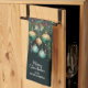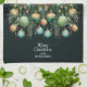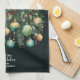 Pine branches, green and gold Christmas tree ornaments and ribbons with Merry Christmas and your family name, this kitchen towel is perfect for your kitchen or to give as a gift. MATCHING items in our collection.