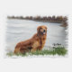 Magnifique récupérateur d'or chez lui et confiant posant fièrement au bord du lac.