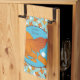 Cette serviette de cuisine graphique avec poisson rouge orange avec aqua pâle et bulles blanches est facilement customisée pour un cadeau unique.