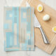 Serviette de cuisine graphique conçue de façon unique dans des couleurs aqua, turquoise, bleu, vert, sable et blanc. Idéal pour ajouter une touche d'eau de mer bleue à votre cuisine, blanchisserie ou bar. Conçu par Sarah Trett pour www.mylittleeden.com