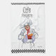 Chef de cuisine français grasse en caricature, en uniforme de chef et casquette blanc, il sert une entrée chaude avec des serviettes de cuisine bleues et blanches. Le Text Café Parisienne au sommet avec des maquillages en noir et blanc sur le dessus et le bas de la serviette. Oeuvre de Patricia Villa.