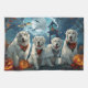 Libérez l'esprit éffrayant avec ce design d'Halloween étrange avec une meute de chiens sous un ciel sombre et clair de lune, entourée de chauves-souris volantes et de citrouilles brillants. Parfait pour ceux qui aiment une touche de plaisir effrayant avec leurs amis en fureur !