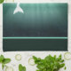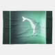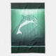 Serviette de cuisine vert foncé de 16" x 24" avec une image imaginaire d'un dauphin dans une mer verte. Voir serviettes assorties, serviettes en papier, set de table en tissu, set de table en papier et dessous de verre. Voir toute la collection Under the Sea Kitchen Towel dans le document FOOD/BEV| Section Linens.