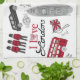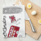 Un souvenir de Londres d'amusement comportant des gardes de palais, Big Ben, des cabines de téléphone rouges, et l'autobus à impériale iconique sur une serviette de cuisine utile. Rouge, blanc, noir, et gris.