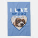 J'adore mon chien Blue Heart Photo Pet Nom de la serviette de cuisine. Une photo d'animal de compagnie en forme de coeur. Ajoutez votre photo et votre nom.