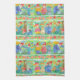 Une serviette de cuisine colorée décorée d'illustrations de gnomes sucrés dans le jardin visitant avec les insectes, arrosant les fleurs, et jouant accentué avec des fleurs de style marguerite rose melon. Amusez-vous pour tous ceux qui aiment le jardinage !