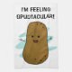 Mignonne, drôle de jeu de patates Je me sens Spudtacular en texte noir en haut du design. Ci-dessous, une pomme de terre brune joyeuse avec des bâtons pour les bras et de minuscules points noirs pour les yeux et un grand sourire heureux.