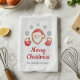 Cute familiale personnalisée Père Noël Joyeux serviette de cuisine de Noël.