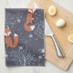 Des renards adorables habillés de casquettes rouges et des foulards se baignent dans une forêt enneigée contre un arrière - plan au charbon de bois.