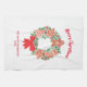 Cette serviette de cuisine ludique et festive est décorée Avec une aquarelle d'une couronne festive de biscuits de Noël.