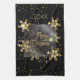 Design de luxe - 20XX Joyeux Noël et Bonne Année! Accueil Décor XMAS Souhaits Salutation Texte de calligraphie décoré avec des personnages d'or magique de Noël, cadeaux d'hiver éléments motif, arrière - plan noir élégant, flocons de neige de Noël, étoiles de Noël d'or, cadeaux et autres symboles festifs. Design graphique original et tendance pour la maison et la vie > Cuisine et cuisine > Linge de table et de cuisine > Serviettes de cuisine, Noël Or et papier noir élégant design de luxe avec modèle texte. Personnalisez-les en ajoutant votre texte de souhaits, deux côtés graphisme festif parties scintillant décoration 2025. Idée cadeau parfait pour la famille et les amis / et décoration de maison