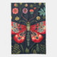 Un papillon rouge vibre contre l'arrière - plan d'un mystérieux jardin de nuit.