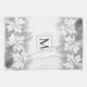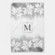 Lave-vaisselle moderne gris feuille d'érable blanc et serviette de cuisine monogramme qui comporte une bordure de feuilles d'érable blanc sur le lavage à l'aquarelle gris et votre monogramme dans un cadre avec contour placé au centre.