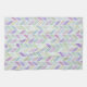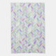Un motif chevron en rayures et aquarelle. Les couleurs comprennent des violets, des verts et des bleus avec un mélange occasionnel de formes triangulaires.
