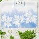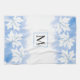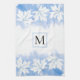 Feuille d'érable blanche moderne sur lave-eau bleu et serviette de cuisine monogramme. Il présente une bordure de feuilles d'érable blanc sur le lavage d'aquarelle bleu ciel et votre monogramme dans un cadre avec contour placé au centre.
