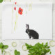 Serviette comportant de beaux pavots rouges avec un lapin noir mignon, de ma peinture en verre originale. potier de ©Annabel