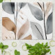 Cette serviette de cuisine présente une image abstraite d'art moderne de plusieurs botaniques dans des tons neutres de teint tan ou beige et gris sur un arrière - plan blanc.