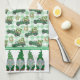 Une Belle Serviette De Cuisine Verte Conçue Avec Des Camions De Ramassage Vert, Des Fils À Cheveux Et Des Gnomes