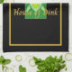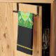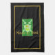 Drôle serviette de cuisine avec un design de crête de style médiéval pour les joueurs de pickleball, a croisé des épées sur le bouclier avec un terrain de pickleball, et "House of Dink" texte or et bordure sur l'arrière - plan noir