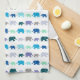 Une serviette de cuisine comportant les éléphants bleus de marche !