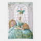 Joli portrait délicat de Marie Antoinette avec un gâteau. Les couleurs pastel de l'eau douce, du mauve et du vert constituent les couleurs dominantes du design. Derrière Marie se trouve un panneau orné de papier peint et une vigne à queue. Le gâteau est énorme et délicieux. Parfait pour de nombreuses occasions. Si vous avez besoin d'aide, contactez Greer à greerdesign@aol.com