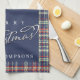 Ce design comprend une serviette de cuisine Joyeuse Noël bleu marine, fait le gardien parfait de l'hôtesse, et est parfait pour la cuisson des vacances, vous pouvez créer votre propre, avec la typographie de script de calligraphie argent, un joli Noël, simple minimaliste, style classique rustique.