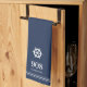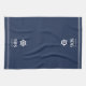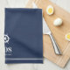 Une serviette de cuisine simple et élégante sur mesure portant le numéro de votre maison et le nom de votre rue en lettres blanches sous l'illustration de la roue d'un bateau nautique. Fait un grand cadeau de clôture de courtier, cadeau de chauffage au foyer, ou une touche de finition unique pour votre maison de location de vacances ou maison de plage.