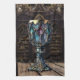 Gobelet médiéval violet et bleu aqua avec jante d'or dans la bibliothèque de château gothique médiéval.