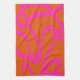 Linge De Cuisine Mi-Siècle Abstrait Moderne Lignes Orange Et Rose