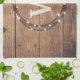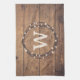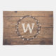 Monogramme design pour Noël avec couronne et décoration de neige sur arrière - plan en bois rustique