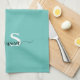 Linge De Cuisine Monogramme argenté et sarcelle féminine avec éclat