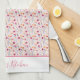 Belle combinaison de fleurs sauvages sur cette serviette de cuisine. Les couleurs sont roses, corail, orange, violet et beige. Monographie avec ton nom ou ton texte.