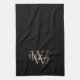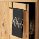 Serviette de cuisine à monogramme élégant et moderne en noir et or. Vous pouvez personnaliser le nom et le monogramme pour créer votre propre design unique. Conçu par Thisisnotme©