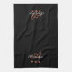 Linge De Cuisine Monogramme de nom de script rose noir élégant