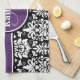 Linge De Cuisine Monogramme élégant violet noir blanc Damas