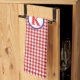 En vichy rouge est toujours dans le style ! Cette serviette de cuisine vous donnera un air de maison frais, gai et lumineux. Personnalisez avec votre monogramme dans un cercle central bleu et blanc.
