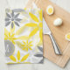 Cette jolie serviette de cuisine personnalisée présente un motif de fleurs graphique jaune et gris comme arrière - plan. En bas central se trouve une bannière de cercle gris assortie, bordée de points jaunes et d'un mince cercle blanc. Au centre se trouve votre monogramme en blanc. Belle pour le printemps et l'été, et personnalisée pour vous! Assurez-vous de voir les produits correspondants dans notre magasin. *Crédit pour design graphique à Malachi Designs on Etsy.