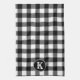 Serviette de cuisine monogrammée avec un Plaid Buffalo noir et blanc rustique.