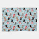 Cute Valentine's Day Australian Shepherds en manteaux tricycles noirs, bruns et merles en pois rouge, rose et blanc, et des pulls de coeur avec des empreintes de pattes éparpillés et des flèches sur un arrière - plan bleu.