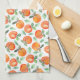 Une pêche douce avec motif vert feuille design de serviettes de cuisine sur un arrière - plan blanc.